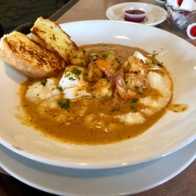 There’s nothing that starts a morning off better than BBQ Shrimp & Grits from Russell’s Marina Grill! Yummy!